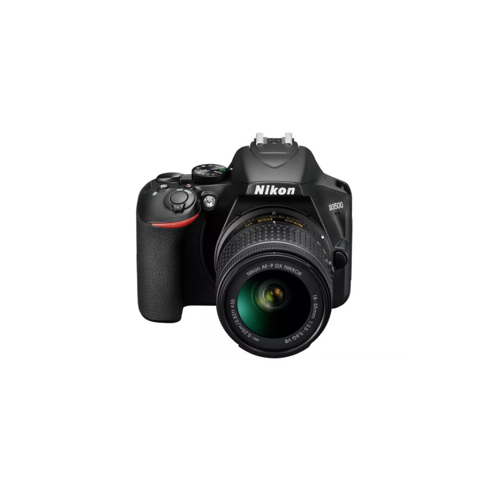 Capture stunning images and video content with this entry-level Nikon D3500 DSLR Camera With AF-P 18-55mm VR Lens. Boasting a comfortable and durable, as well as sleek and stylish design, this Nikon digital camera allows you to take HD photographs and videos effortlessly in almost any location using the five exposure modes, wide ISO range, and selection of three focusing modes.